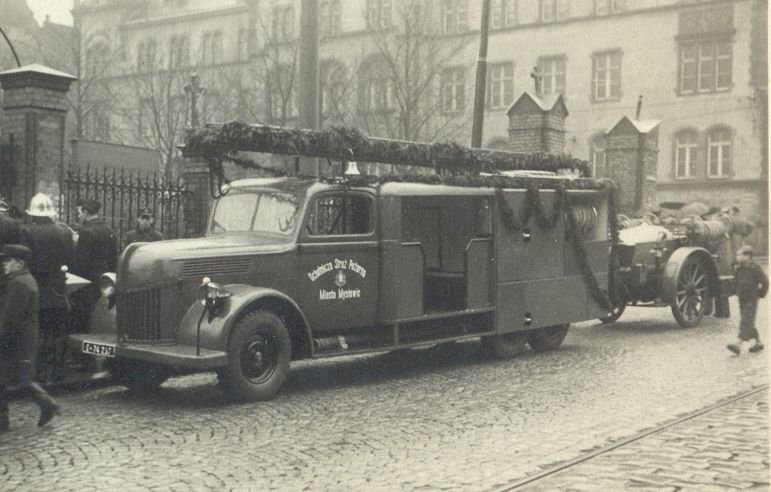 Z chwilą reaktywowania po II wojnie światowej OSP Mysłowice, władze miasta ufundowały jednostce samochód pożarniczy „Praga”, na którym wykonano zabudowę strażacką i który przystosowany był do gaszenia pożarów w zakładach przemysłowych. Uroczystość poświecenia wozu odbyła się 3 listopada 1946 r. Z tej okazji do Mysłowic zaproszone zostały władze wojewódzkie oraz przedstawiciele władz strażackich i wojskowych.