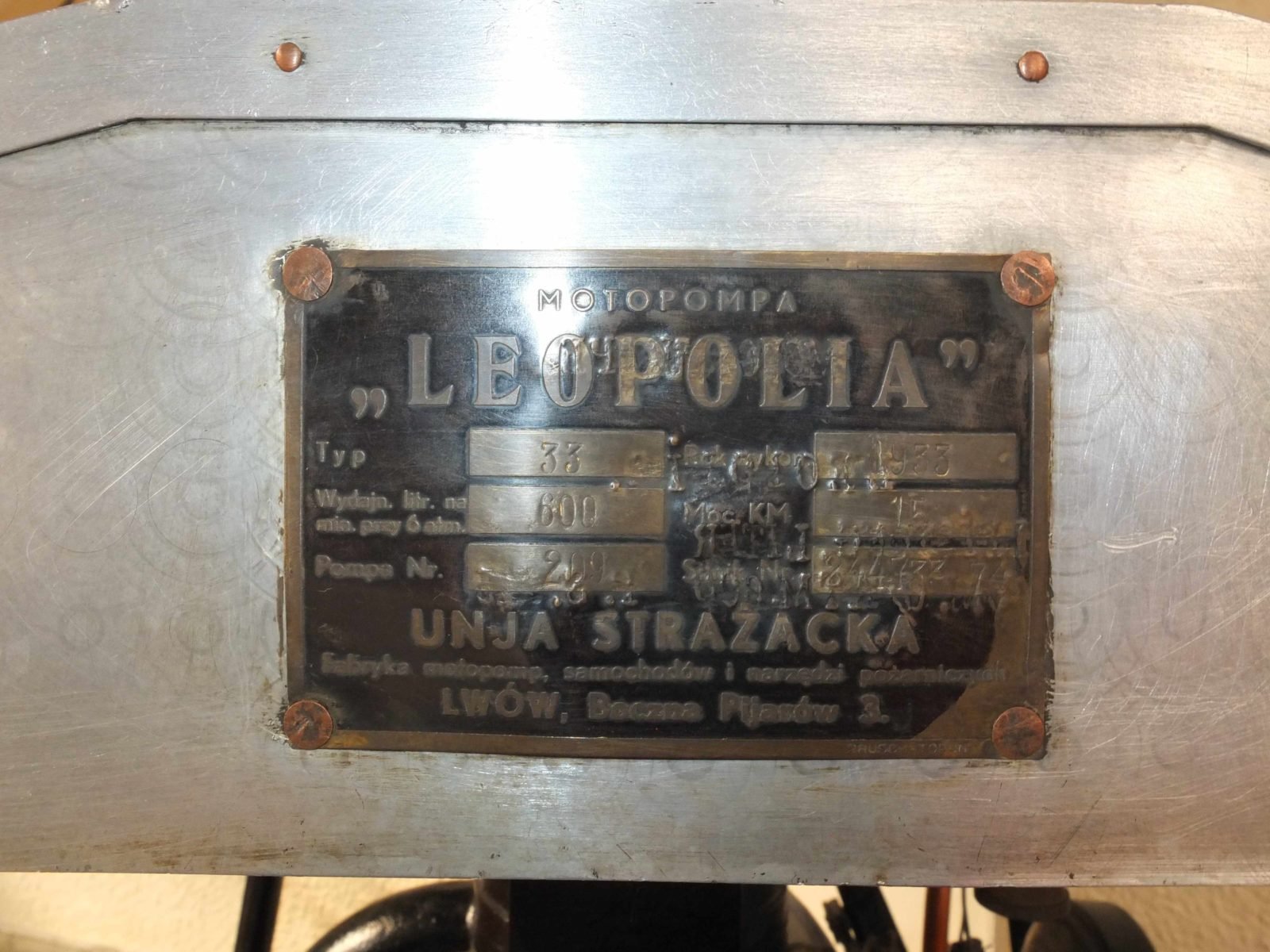 Motopompa „Leopolia”, którą możemy podziwiać, w zbiorach Centralnego Muzeum Pożarnictwa została wyprodukowana w 1933 r. przez jedną z najlepszych i największych polskich firm „Unia Strażacka”. Lwowska firma powstała pod nazwą „Dom Handlowy” w 1913 r., kiedy to Rada Zawiadowcza Małopolskiego Związku Straży Pożarnych zleciła organizację przedsiębiorstwa, którego zadaniem miało być zaopatrywanie galicyjskich straży pożarnych. Tego typu przedsięwzięcia powstawały ponieważ działacze zrzeszeni w Związku Straży Pożarnych rozumieli konieczność uniezależnienia się od producentów zagranicznych.