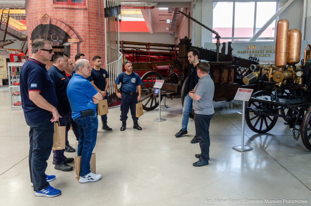 5 czerwca 2025 roku Centralne Muzeum Pożarnictwa gościło delegację strażaków z Argentyny. Strażacy z Buenos Aires przybyli do Polski wymienić się doświadczeniami, szkolić się oraz poznać specyfikę polskiego pożarnictwa. Podczas tej wizyty, nie mogło zabraknąć poznania historii ochrony przeciwpożarowej na ziemiach polskich. Delegację przyjęli pracownicy CMP: Grzegorz Mazur, Paweł Karol Gąsiorczyk oraz Michał Figzał.