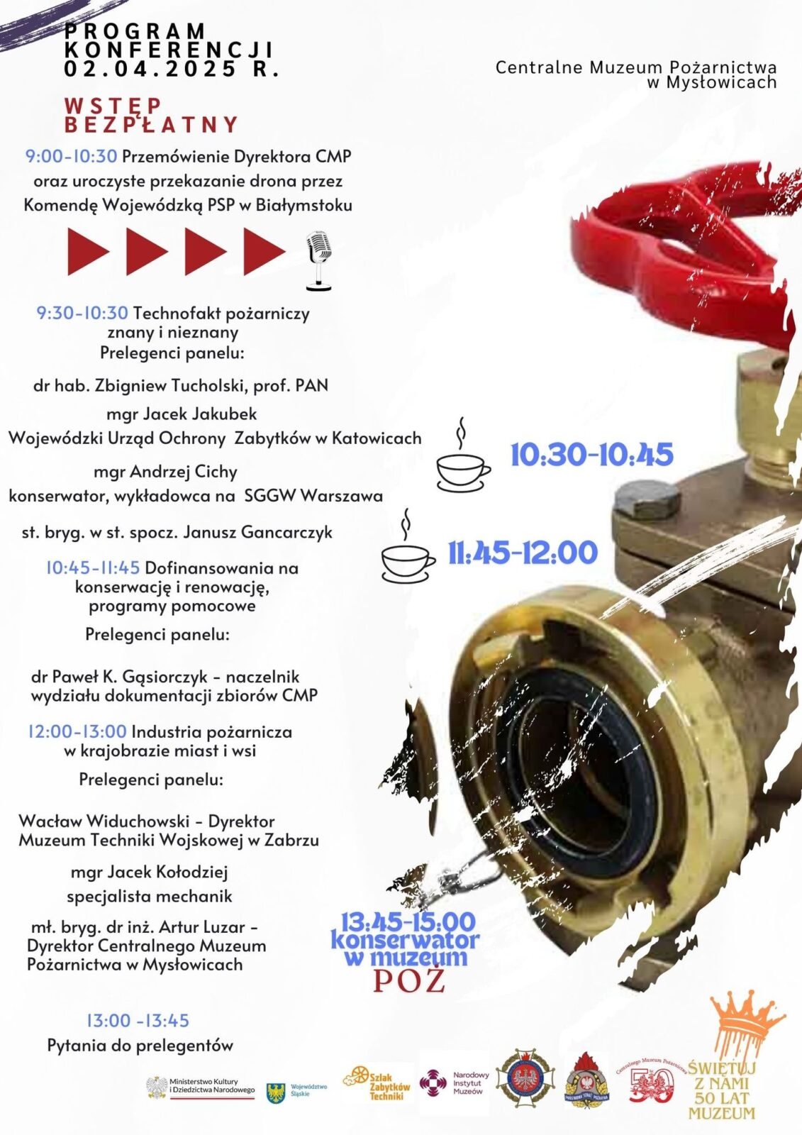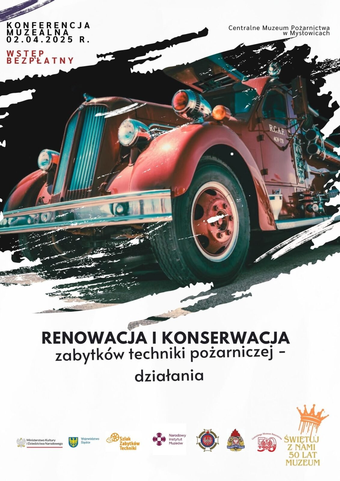 Program konferencji muzealnej dotyczącej konserwacji i renowacji zabytków techniki pożarniczej. Wydarzenie to odbędzie się 2 kwietnia o godzinie 9:00. Wstęp wolny. Serdecznie zapraszamy.